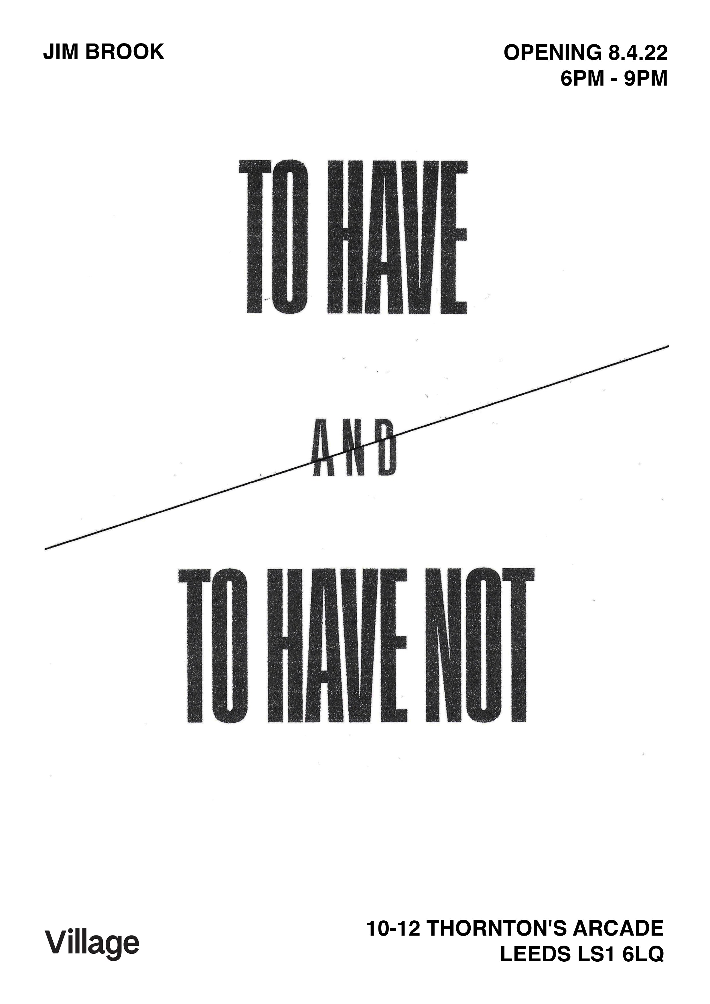 Village is proud to present our next exhibition 'To Have and To Have Not' by Jim Brook.